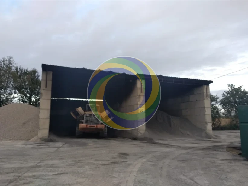 Les parois du hangar étaient fortement encrassées par des dépôts de suie et de poussières noires, résultant d’une activité industrielle ou d’un sinistre.