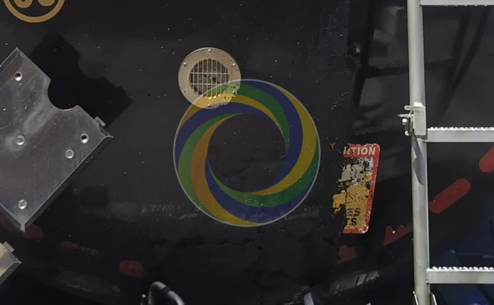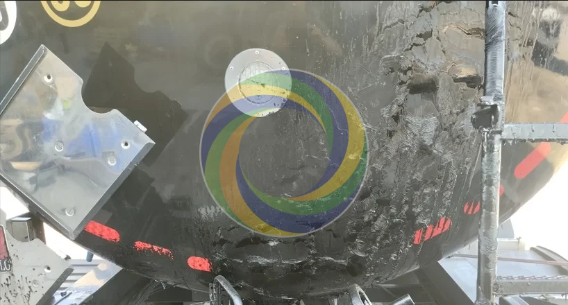 Le sas arrière de cette citerne présentait d’importantes accumulations de bitume et de résidus collants, rendant la zone difficile à entretenir et potentiellement problématique pour les interventions techniques.