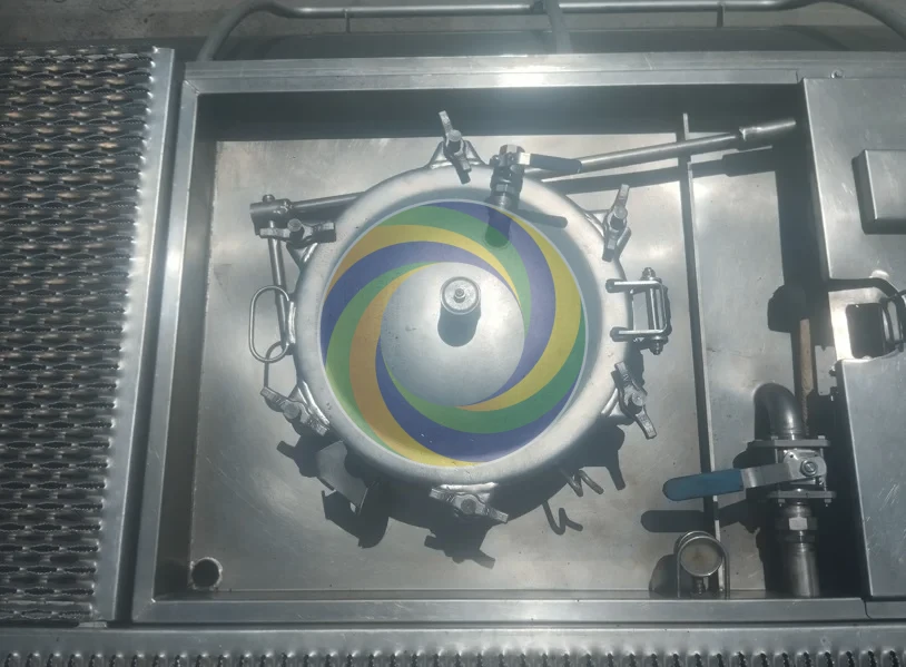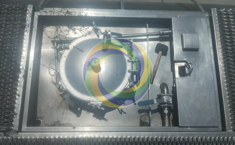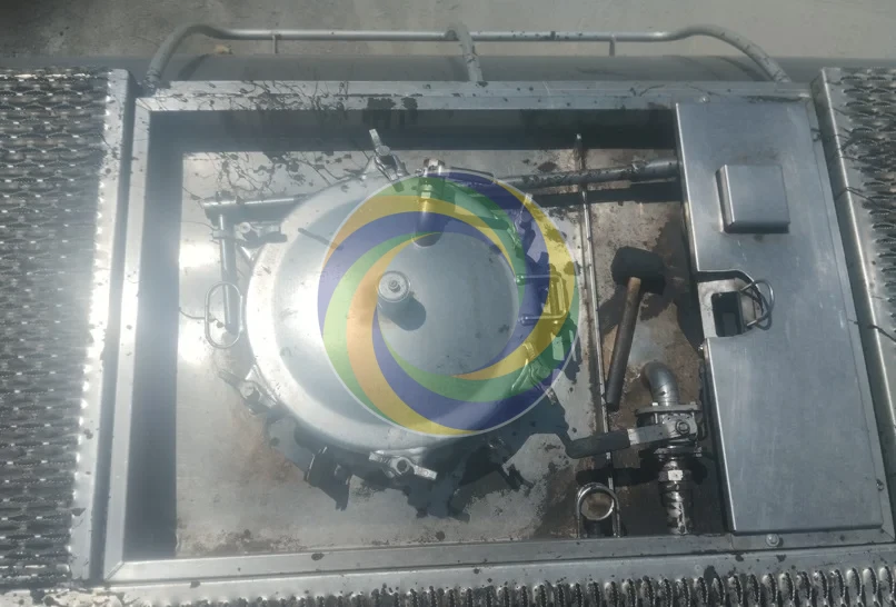 Ce sas de citerne présentait des dépôts épais de bitume et de poussières d’exploitation accumulés au fil des cycles de chargement et de transport.